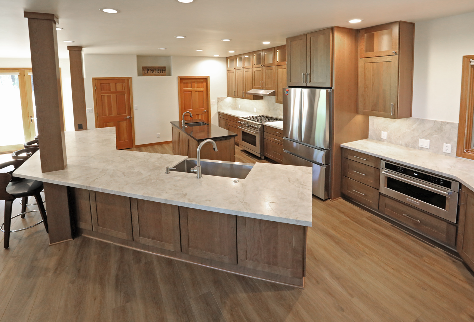 Highwood Construction worked closely with the customer to design a kitchen and living area that is both modern and open.